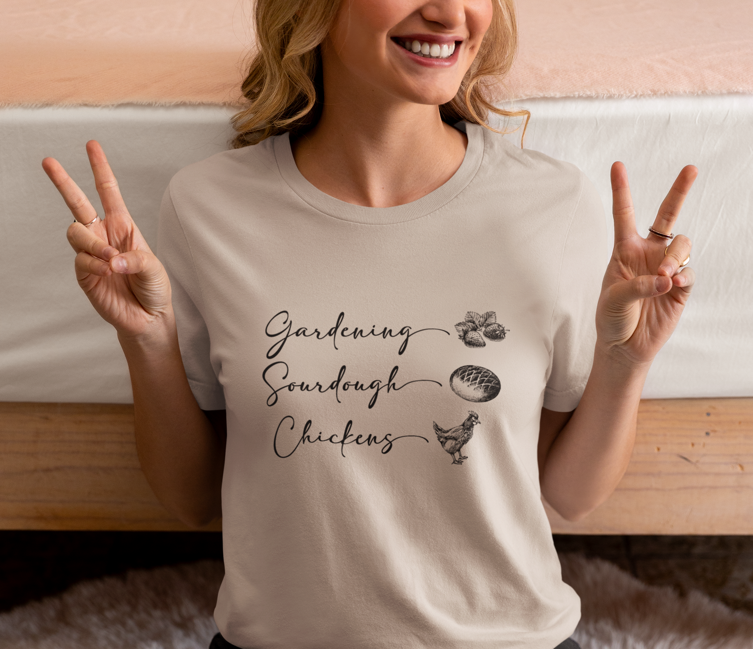 The ultimate homesteader trifecta: Gardening, Sourdough, and Chickens. With a soft, breathable feel and a true-to-size fit.